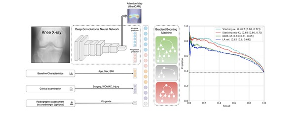 Multimodal machine learning-based knee osteoarthritis progression prediction from plain radiographs and clinical data.